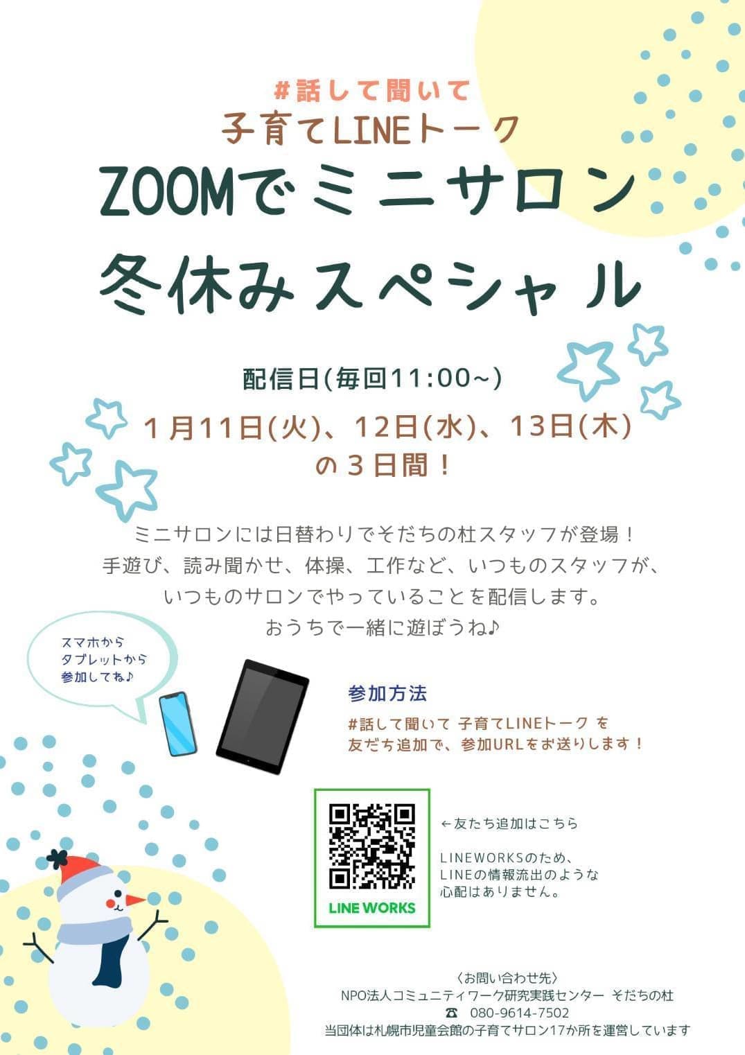 子育てサロンが冬休み期間中、zoomによるミニサロンの配信を行います。
